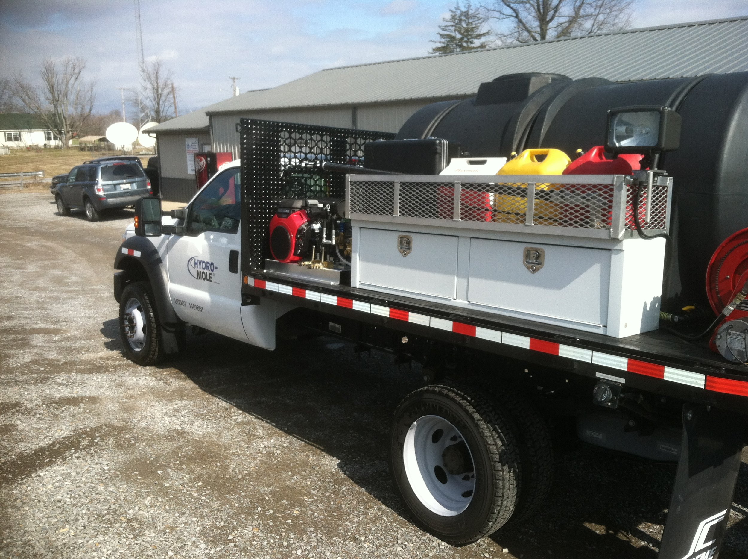 Portable pressure washers up to 3500 PSI complete with water tank, hose reel and custom skid frame.